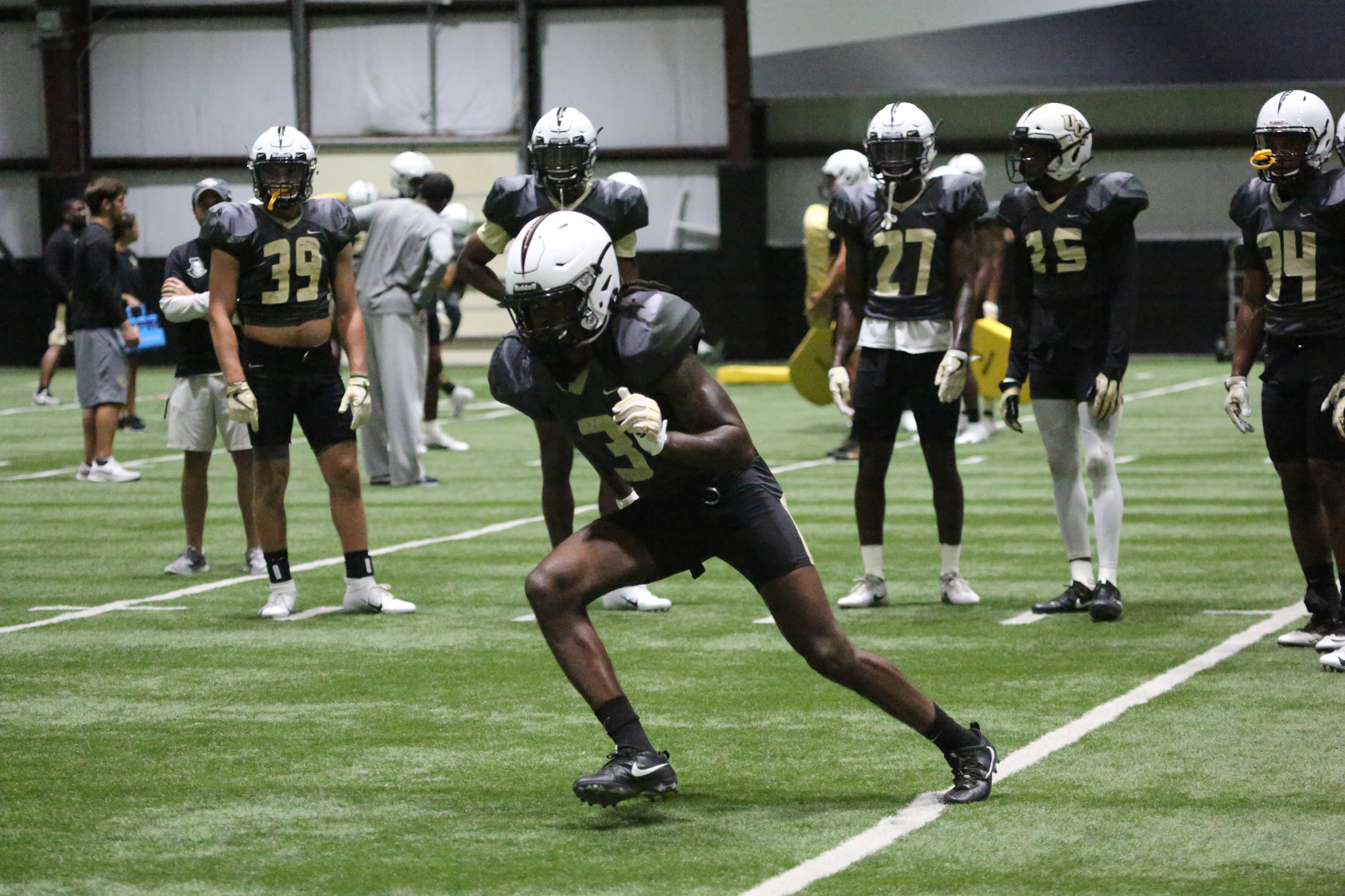 GALLERY: UCF Football Practice 8.3.18 August 4, 2018 Sarah Kelliher Photos, TOP STORY, UCF Knights Football All photos taken by Sarah Kelliher (@sarahkelliher4) for Knight Sports Now. UCF players stretch before the start of Friday’s practice. Defensive Coordinator Randy Shannon looks on as his team warms up before Friday’s practice. UCF players stretch before the start of Friday’s practice. UCF players stretch before the start of Friday’s practice. UCF players stretch before the start of Friday’s practice. DB Rashard Causey. DB Zamari Maxwell (8) faces off with a teammate. DB Rashard Causey makes a catch. DB Rashard Causey makes a catch. DB Nevelle Clarke makes a catch. DB Zamari Maxwell (8) makes a catch. DB Nevelle Clarke. DB Rashard Causey. LB Pat Jasinski makes a play during a drill. DL Titus Davis DB Brandon Moore. DB Rashard Causey. DB Rashard Causey. UCF players run through defensive drills. DB Rashard Causey. DB Antwan Collier. QB McKenzie Milton receives instruction from Coach Josh Heupel. QB McKenzie Milton receives instruction from Coach Josh Heupel. DB Brandon Moore. DB Rashaan Lewis. DL Titus Davis high fives a teammate during practice. (from left to right) DBs Nevelle Clarke and Rashard Causey work through a drill together. UCF players are given instructions during a drill. DB Nevelle Clarke runs past a teammate during a drill. The UCF D-Line runs through drills during Friday’s practice. The UCF D-Line runs through drills during Friday’s practice. The UCF D-Line runs through drills during Friday’s practice. The UCF D-Line runs through drills during Friday’s practice. DB Jonathan Gebka. DB Jermaine McMillian runs through a drill. DB Jermaine McMillian runs through a drill. DB Antwan Collier runs through a drill during Friday’s practice. DB Richie Grant runs through a drill during Friday’s practice. DB Antwan Collier runs through a drill during Friday’s practice. DB Brandon Moore makes a catch during a drill during Friday’s practice. DB Rashard Causey makes a catch during a drill in Friday’s practice. DB Rashard Causey makes a catch during a drill in Friday’s practice. DB Rashaan Lewis makes a catch during a drill in Friday’s practice. DB Dyllon Lester makes a play during a drill in Friday’s practice. FootballKnightsUCF Football