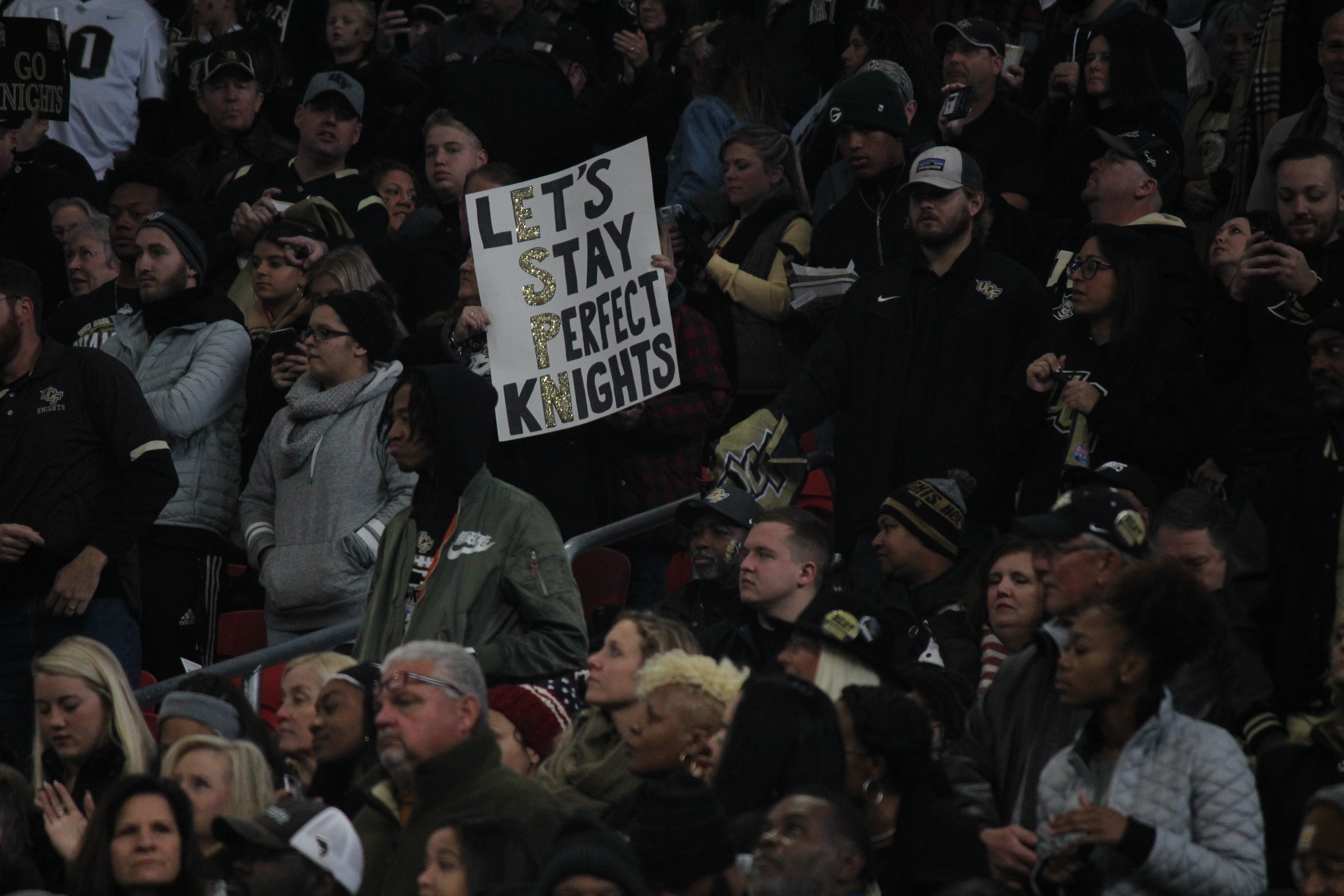 UCF fans hold their signs where the Auburn players could see them.
