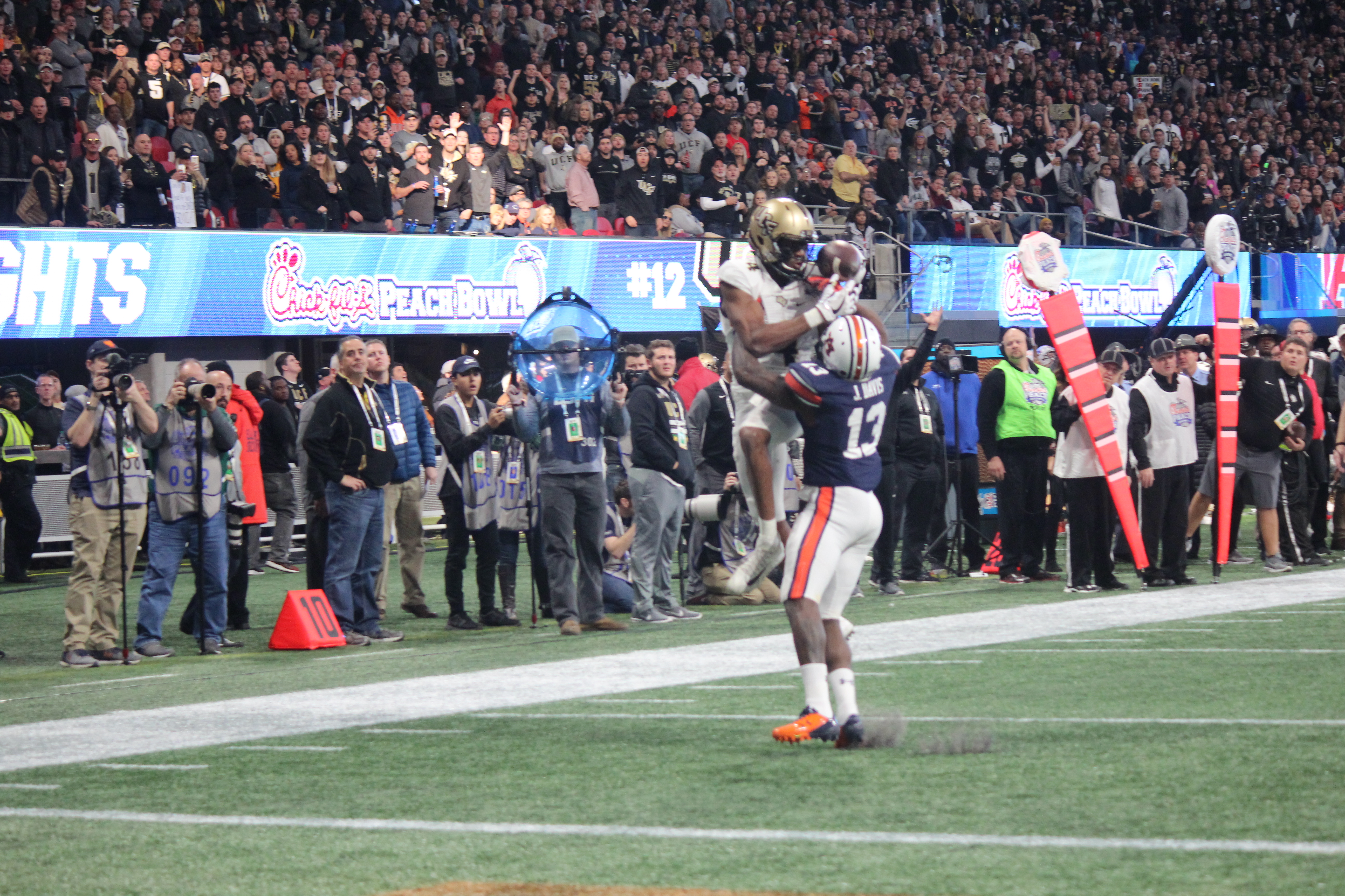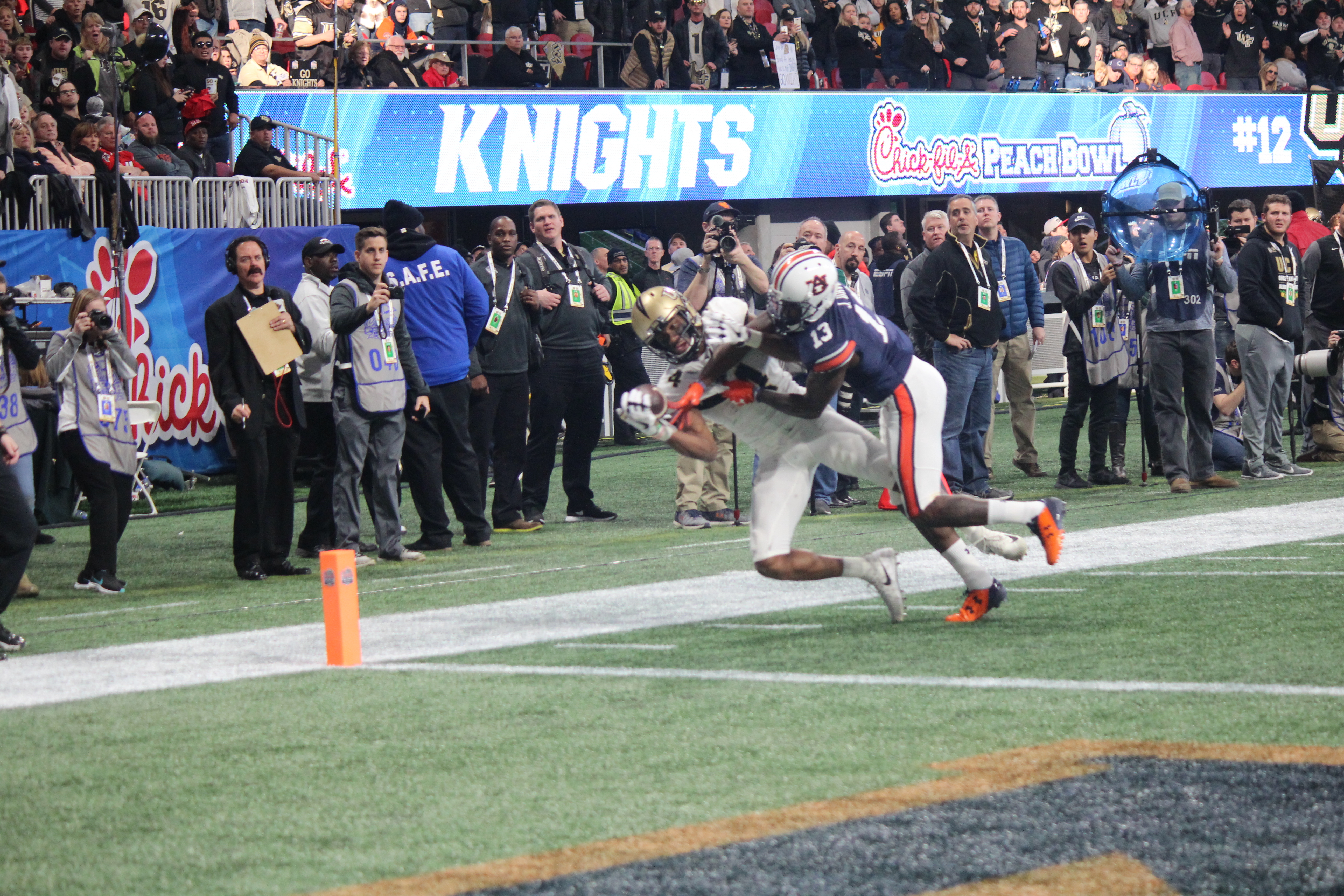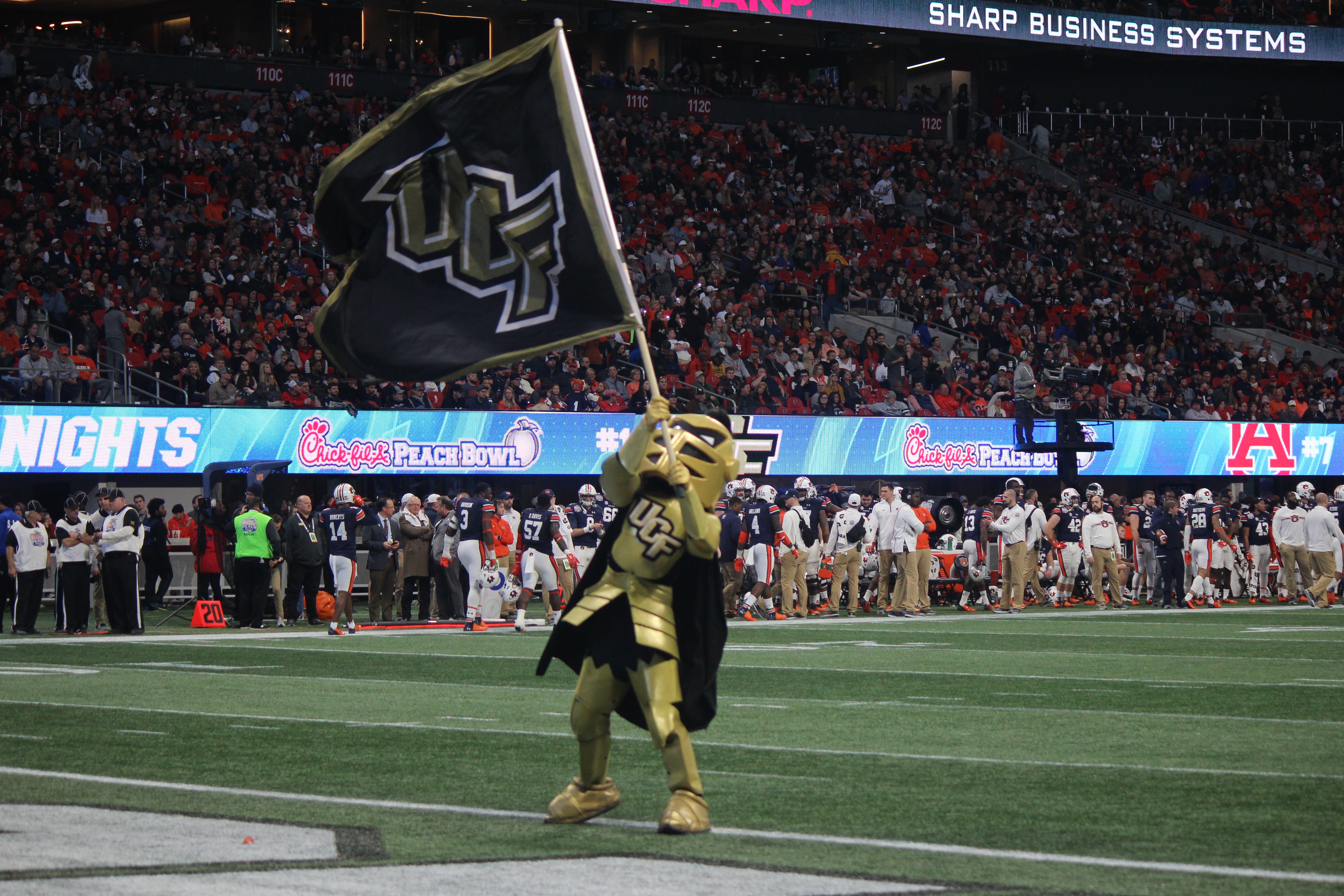Knightro gets Knight fans hyped up in the first half of the Peach Bowl.