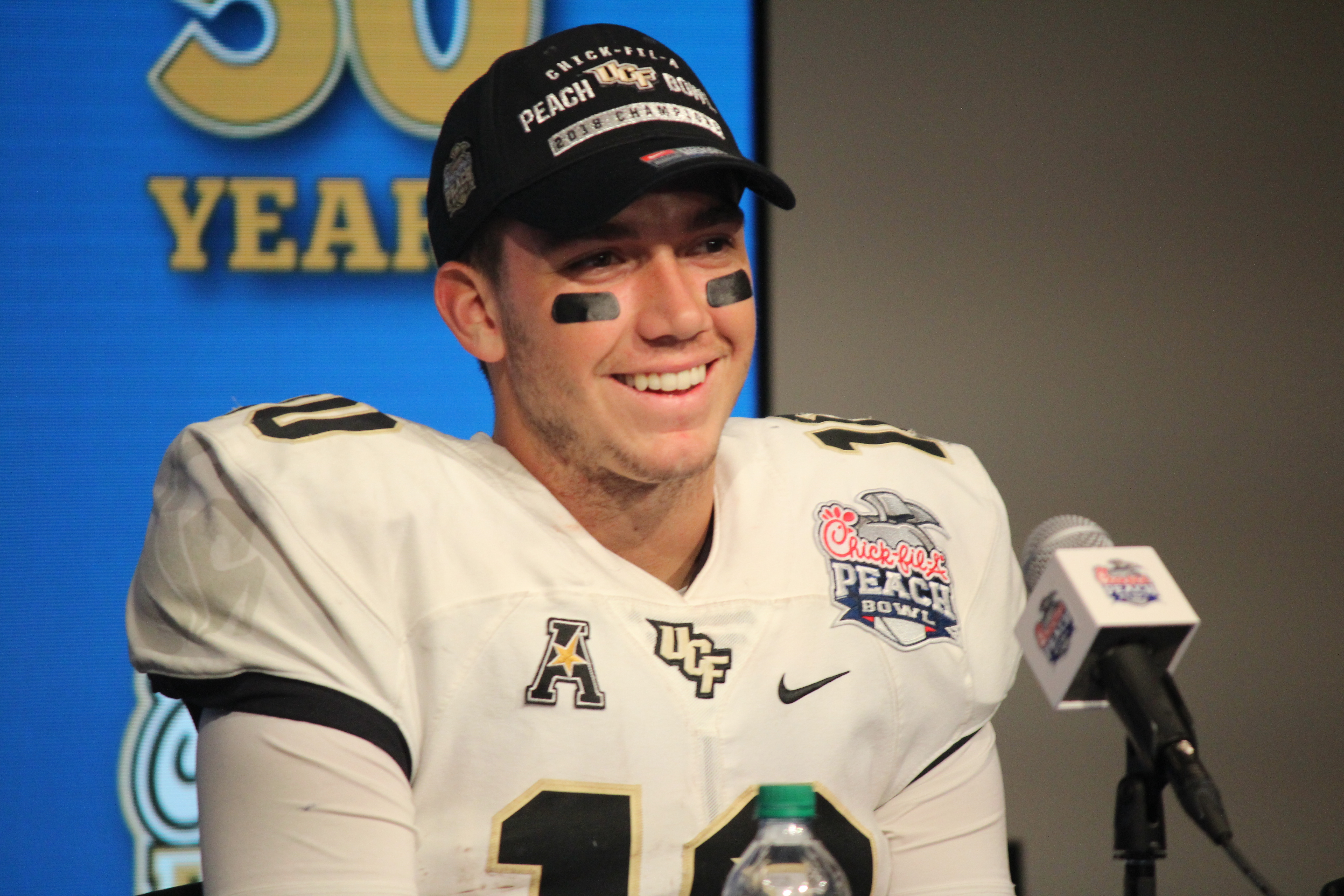 McKenzie Milton smiles as he answers a question at the post game press conference.