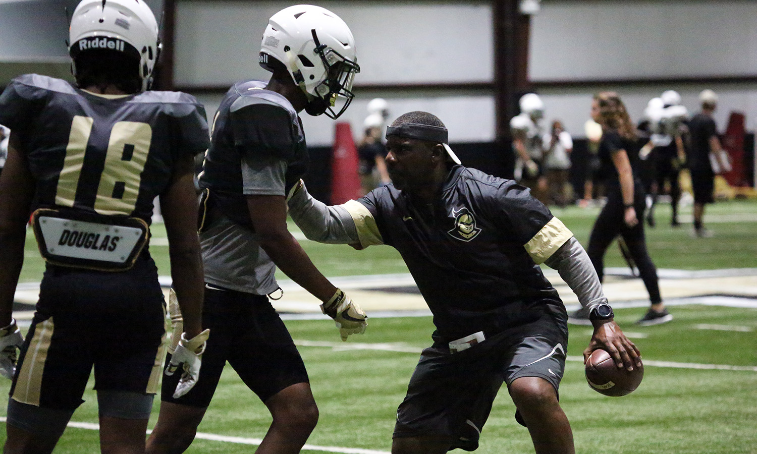 GALLERY: UCF Football Practice 8.3.18 August 4, 2018 Sarah Kelliher Photos, TOP STORY, UCF Knights Football All photos taken by Sarah Kelliher (@sarahkelliher4) for Knight Sports Now. UCF players stretch before the start of Friday’s practice. Defensive Coordinator Randy Shannon looks on as his team warms up before Friday’s practice. UCF players stretch before the start of Friday’s practice. UCF players stretch before the start of Friday’s practice. UCF players stretch before the start of Friday’s practice. DB Rashard Causey. DB Zamari Maxwell (8) faces off with a teammate. DB Rashard Causey makes a catch. DB Rashard Causey makes a catch. DB Nevelle Clarke makes a catch. DB Zamari Maxwell (8) makes a catch. DB Nevelle Clarke. DB Rashard Causey. LB Pat Jasinski makes a play during a drill. DL Titus Davis DB Brandon Moore. DB Rashard Causey. DB Rashard Causey. UCF players run through defensive drills. DB Rashard Causey. DB Antwan Collier. QB McKenzie Milton receives instruction from Coach Josh Heupel. QB McKenzie Milton receives instruction from Coach Josh Heupel. DB Brandon Moore. DB Rashaan Lewis. DL Titus Davis high fives a teammate during practice. (from left to right) DBs Nevelle Clarke and Rashard Causey work through a drill together. UCF players are given instructions during a drill. DB Nevelle Clarke runs past a teammate during a drill. The UCF D-Line runs through drills during Friday’s practice. The UCF D-Line runs through drills during Friday’s practice. The UCF D-Line runs through drills during Friday’s practice. The UCF D-Line runs through drills during Friday’s practice. DB Jonathan Gebka. DB Jermaine McMillian runs through a drill. DB Jermaine McMillian runs through a drill. DB Antwan Collier runs through a drill during Friday’s practice. DB Richie Grant runs through a drill during Friday’s practice. DB Antwan Collier runs through a drill during Friday’s practice. DB Brandon Moore makes a catch during a drill during Friday’s practice. DB Rashard Causey makes a catch during a drill in Friday’s practice. DB Rashard Causey makes a catch during a drill in Friday’s practice. DB Rashaan Lewis makes a catch during a drill in Friday’s practice. DB Dyllon Lester makes a play during a drill in Friday’s practice. FootballKnightsUCF Football